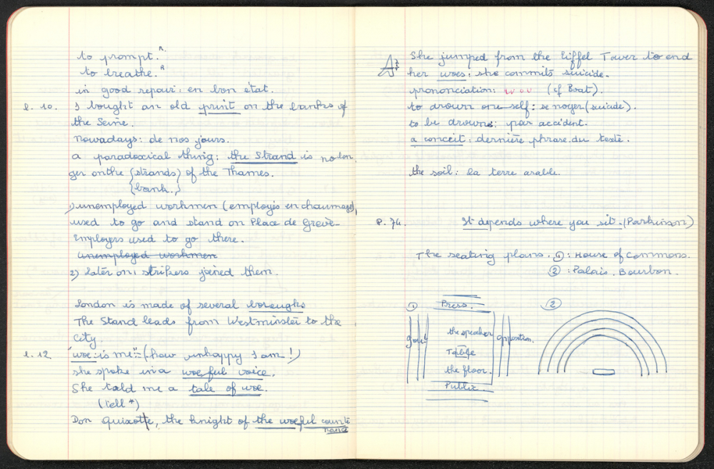 Notes : Cahier d'Anglais de Martine Leroy-Bouveyron (née Leroy) alors âgée de 17 ans, élève de 1ère M3, au Lycée Victor Duruy à Paris (VIIe arrondissement), durant l'année 1964-1965.