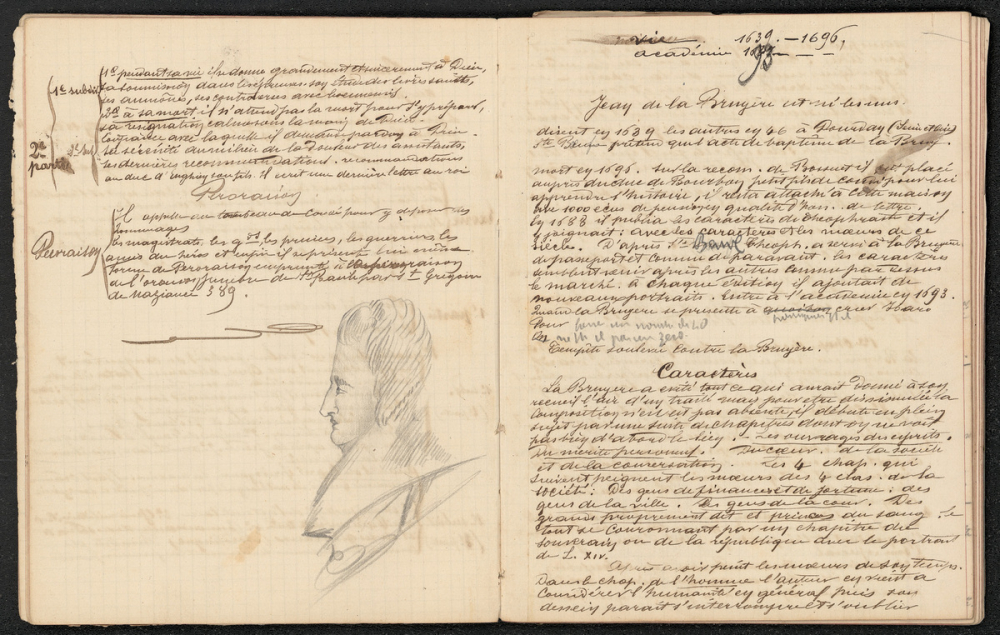 Notes : Il s'agit du cahier de Littérature française et de cosmographie de l'élève Henry Taudière, scolarisé au collège Saint-Joseph de Poitiers, probablement durant le milieu des années 1870.