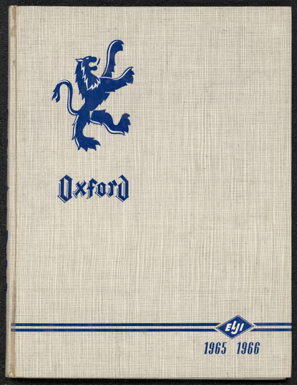 Éditeur : Oxford, Elji 1965-1966. Insigne de la marque représentant un lion bleu rampant de profil, levé sur la patte arrière droite avec les pattes avant droite et gauche avancées en position d'attaque, la queue relevée verticalement dont l'extrémité forme une vague.