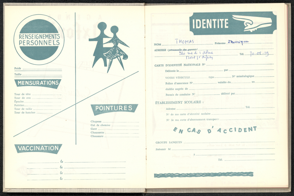 Notes : Il s'agit de l'agenda scolaire de Dominique Thomas, enseignant d'Histoire-Géographie et d'Instruction Civique au lycée Fontenelle (futur collège), ainsi qu'au lycée Jeanne d'Arc de Rouen, durant l'année 1965-1966.