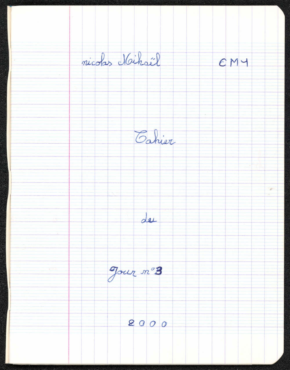 Notes : Cahier du jour n°3 appartenant à Nicolas Mihaël, scolarisé en classe de CM1 à l'école de Reillanne (04) pour l'année scolaire 1999-2000.