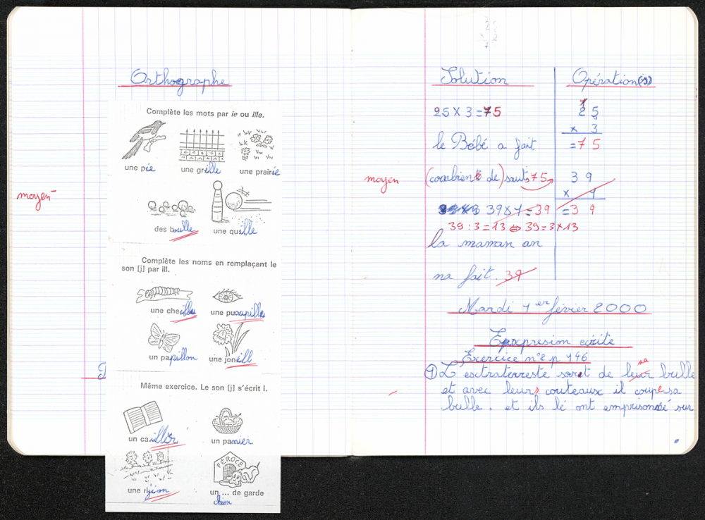 - exercices de grammaire et d'orthographe (dictées, conjugaisons, vocabulaire).