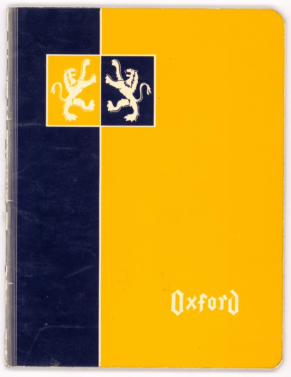 Description : Cahier en papier vélin de marque "Oxford", à la couverture en papier pelliculé et à la reliure brochée au fil. Réglure Séyès.