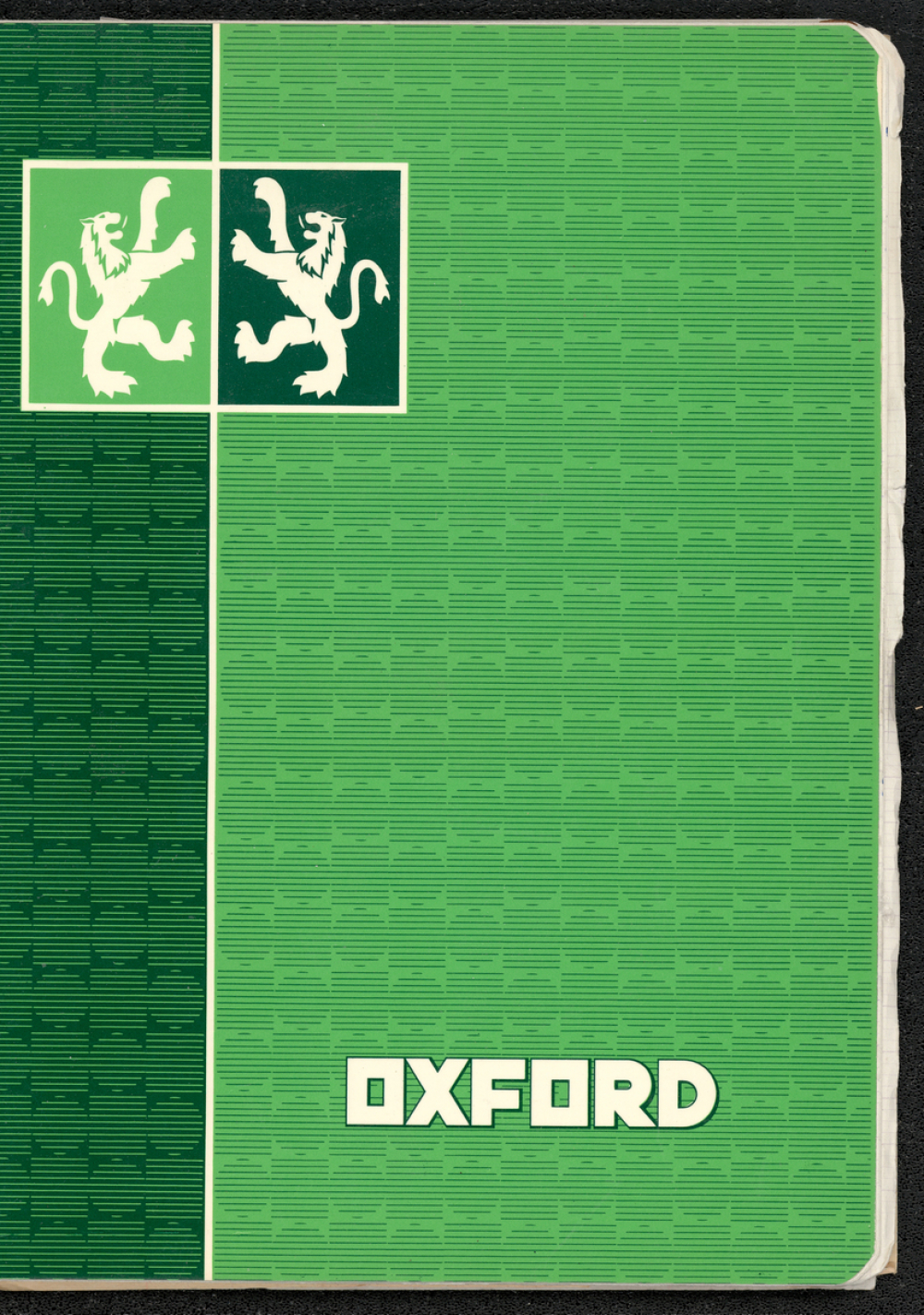 Description : Cahier en papier vélin de marque "Oxford", à la couverture en papier pelliculé et à la reliure brochée au fil. Réglure Séyès.