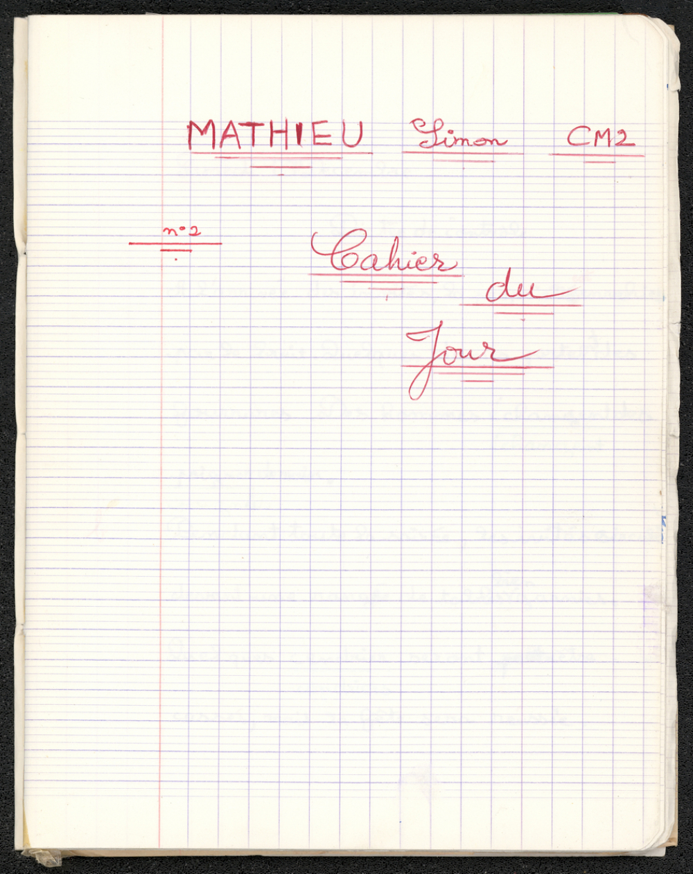 Notes : Cahier de devoirs journaliers n°2 appartenant à Simon Mathieu, scolarisé en classe de CM2 pour l'année scolaire 1984-1984.