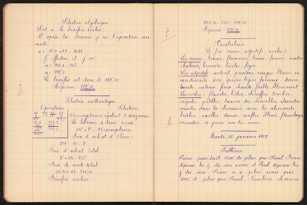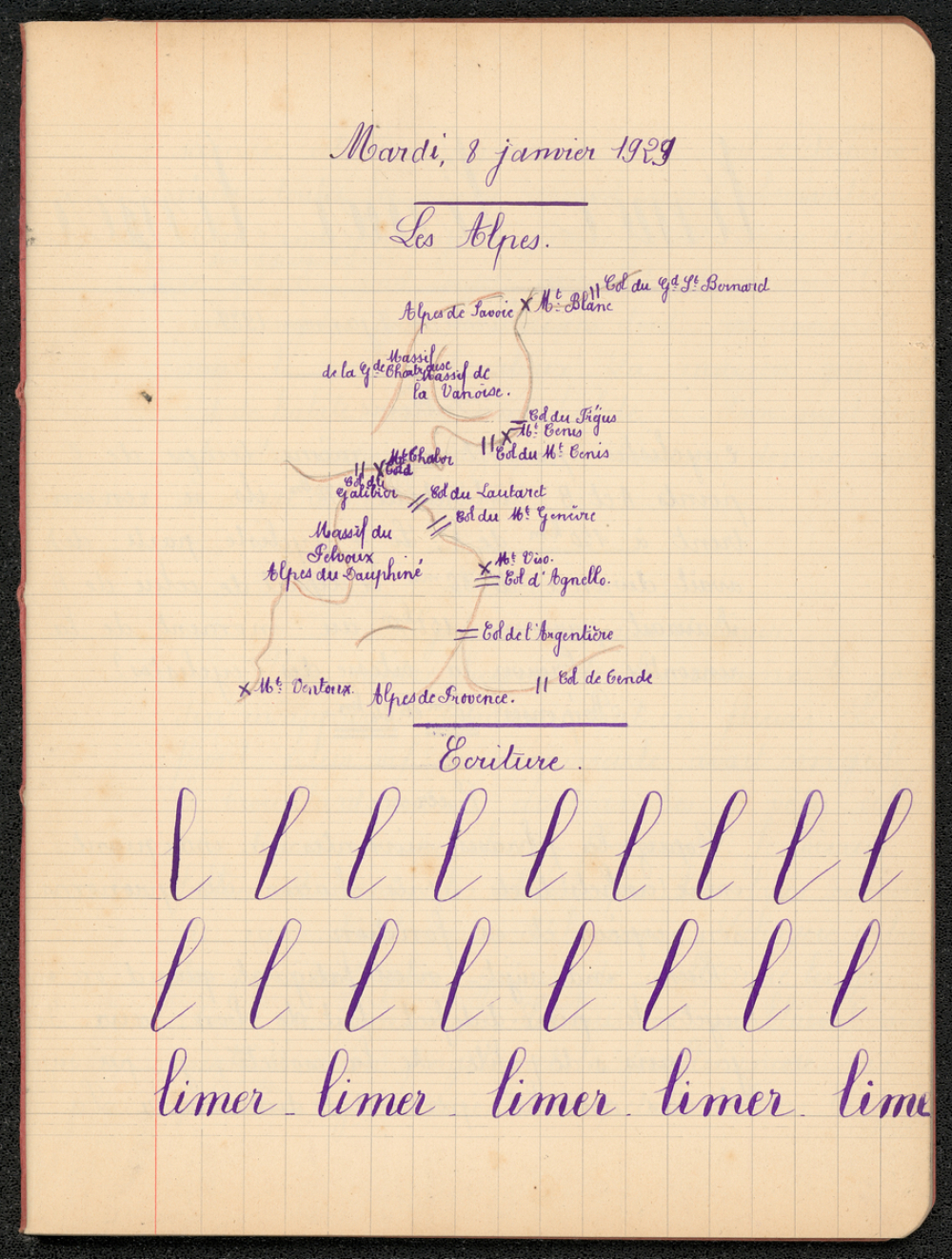 Notes : Cahier du jour appartenant à Anne-Marie Dargaud pour l'année scolaire 1928-1929.