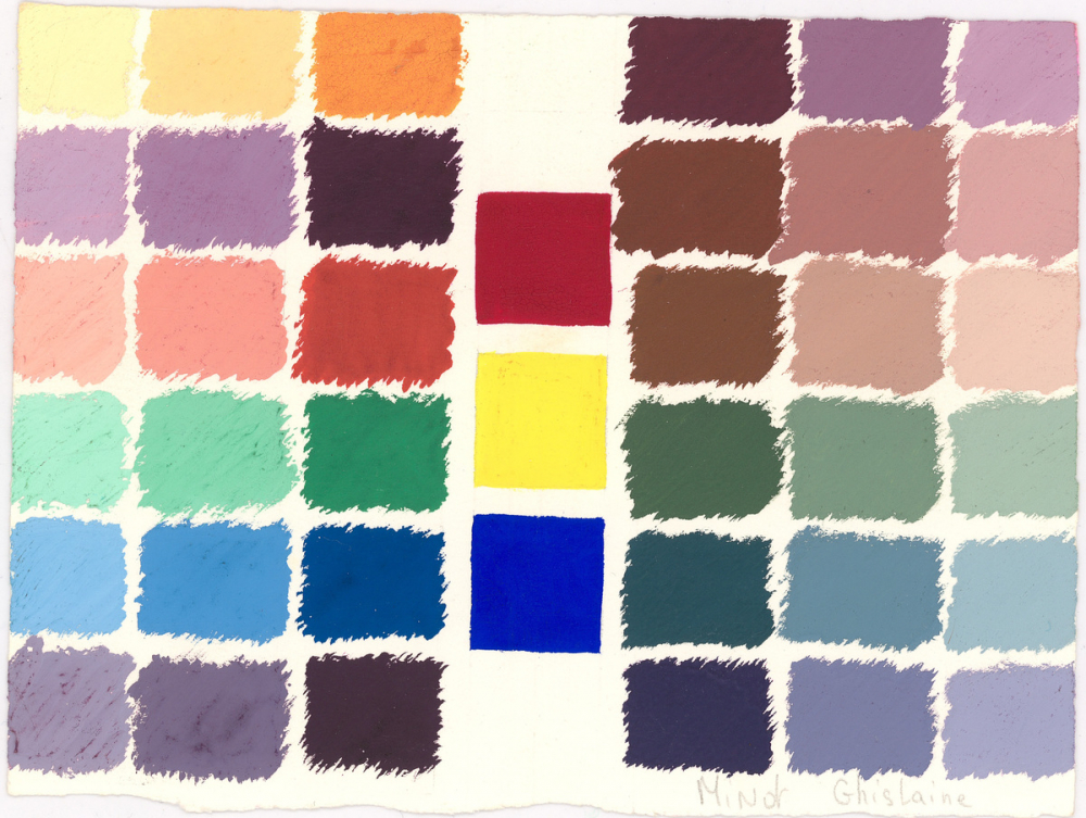 Description : Carrés peints de différentes couleurs avec des espaces blancs entre chaque.