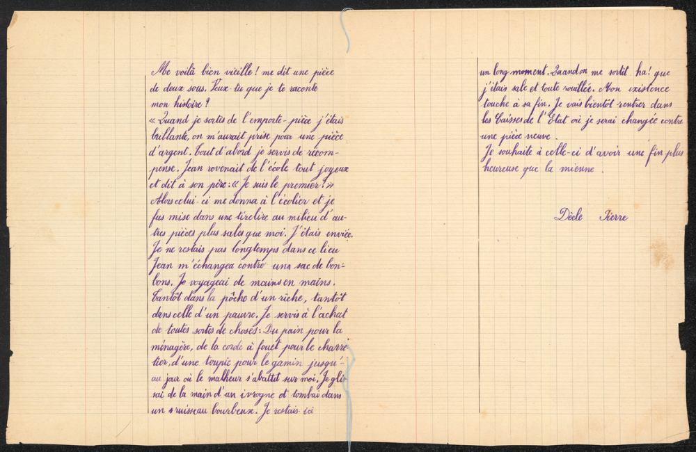 Sujet : "Histoire d'une pièce de deux sous racontée par elle-même".