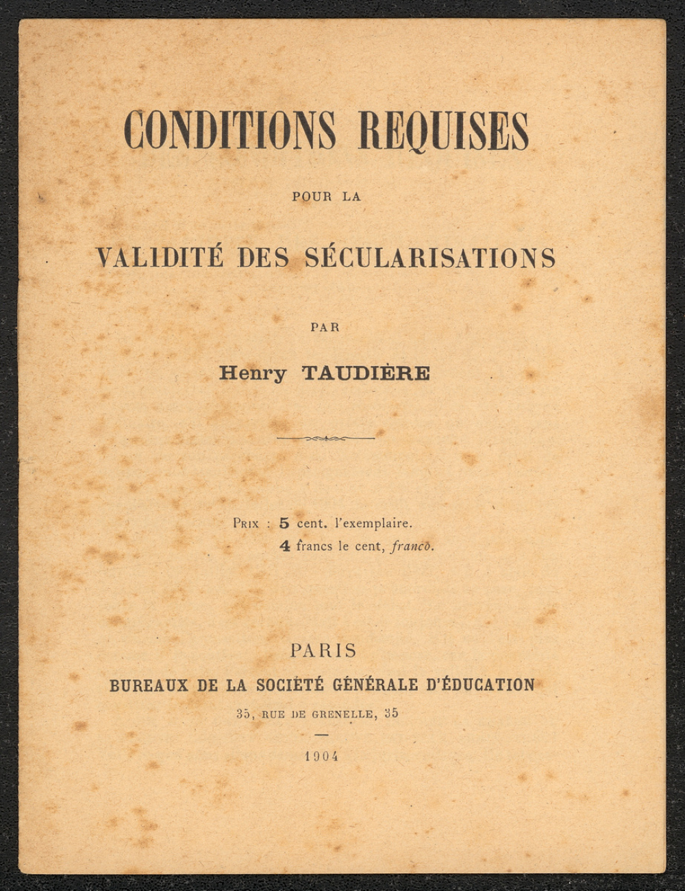 Éditeur : "Bureaux de la Société Générale d'Education, 35, rue de Grenelle, Paris. 1904"
