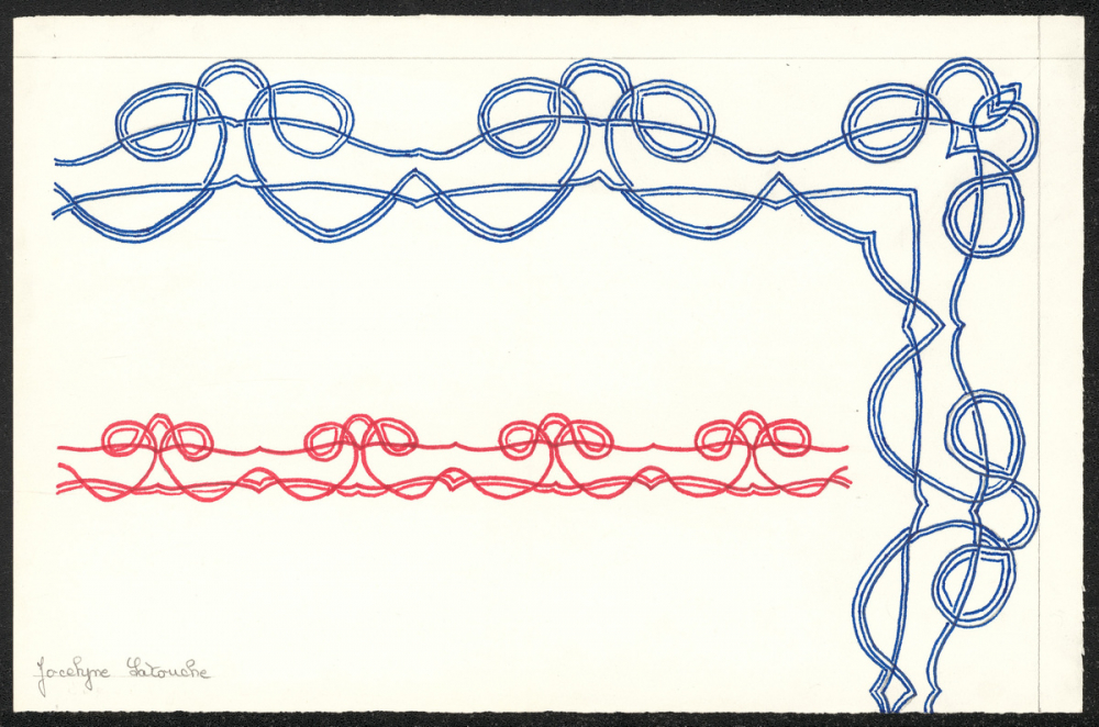 • texte manuscrit : Jocelyne Latouche (crayon à papier) (recto)