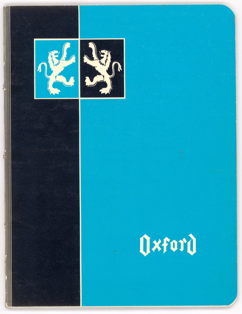 Description : Cahier en papier vélin de marque "Oxford", à la couverture en papier pelliculé et à la reliure brochée au fil. Réglure Séyès.