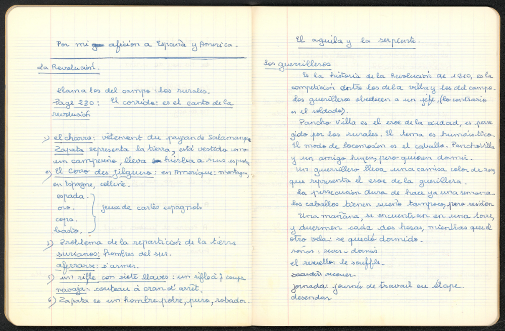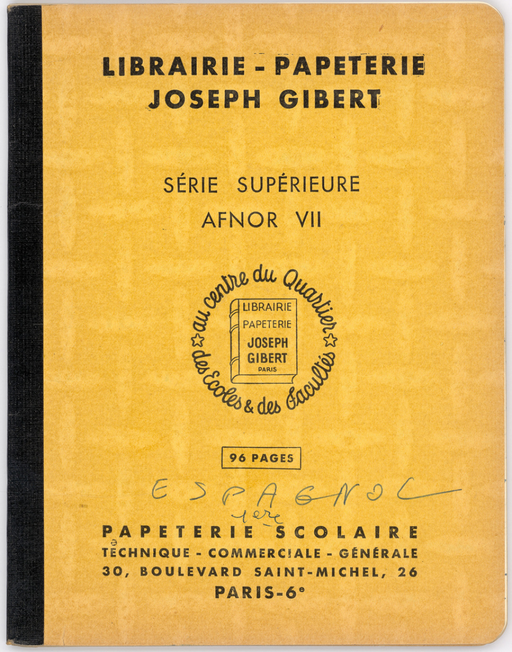 Notes : Cahier d'Espagnol de Martine Leroy-Bouveyron (née Leroy) alors âgée de 17 ans, élève de 1ère M3 (Moderne) au Lycée Victor Duruy à Paris (VIIe arrondissement), durant l'année 1964-1965.
