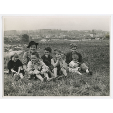 Femme et enfants dans un paysage ressemblant à la Zone autour de Paris.