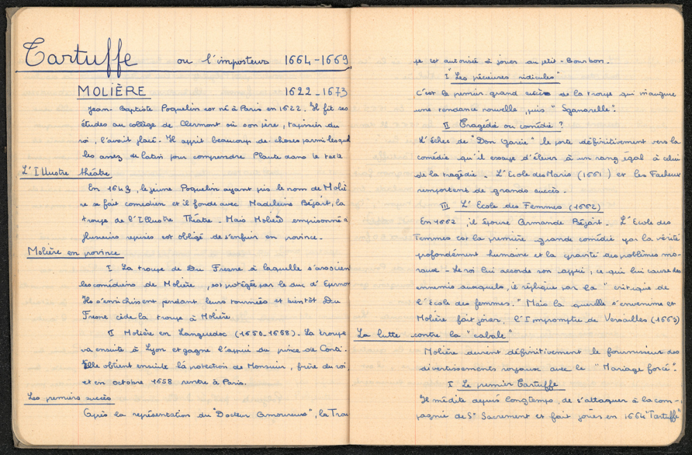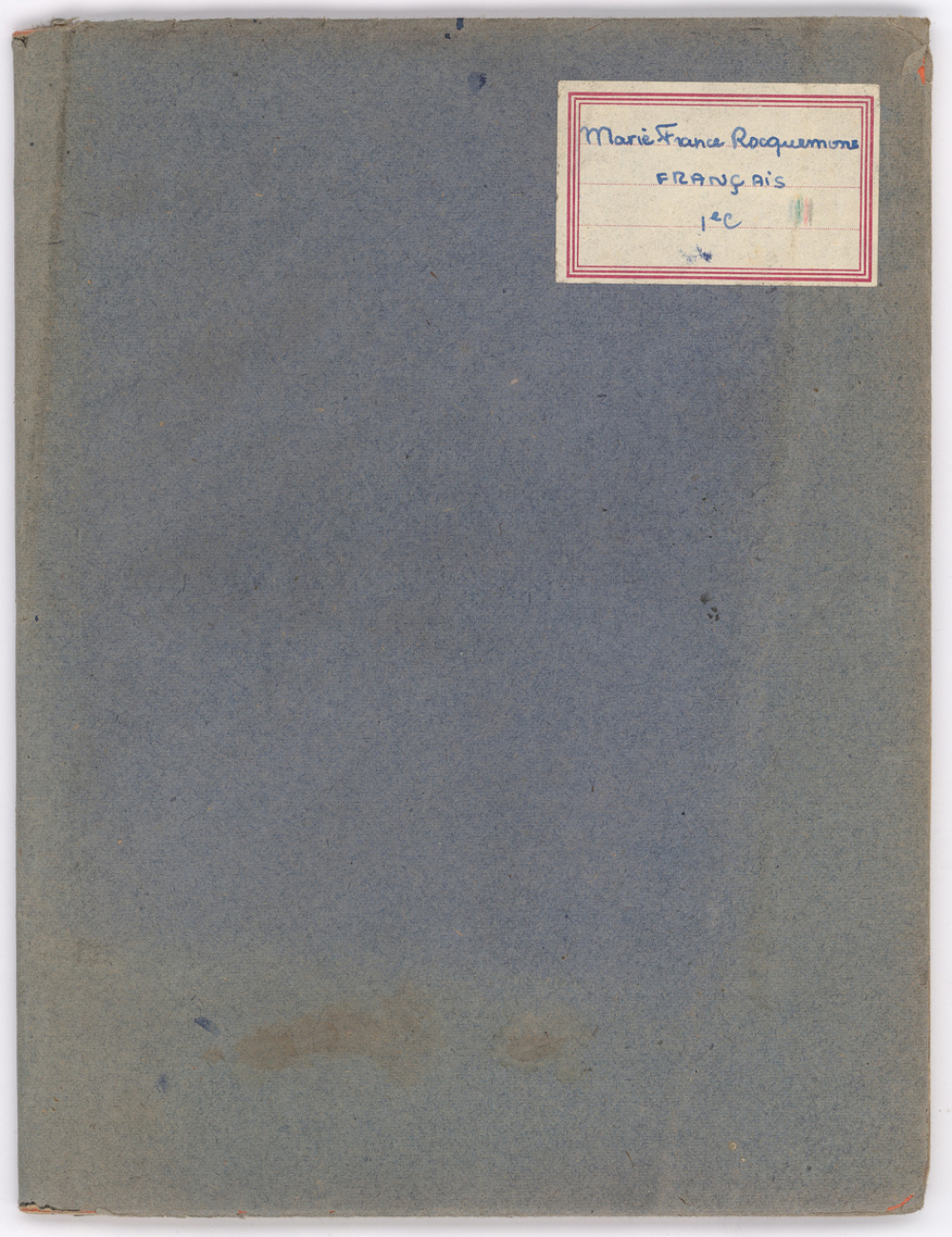 Notes : Il s'agit du cahier de Français de Marie-France Rocquemont (épouse Morel), élève alors scolarisée au lycée Marie Curie de Sceaux (Hauts de Seine, ex-Seine) en classe de 1ère C, durant l'année 1957-1958.
