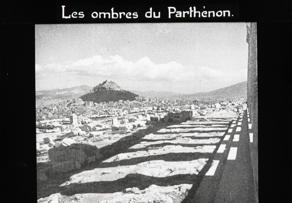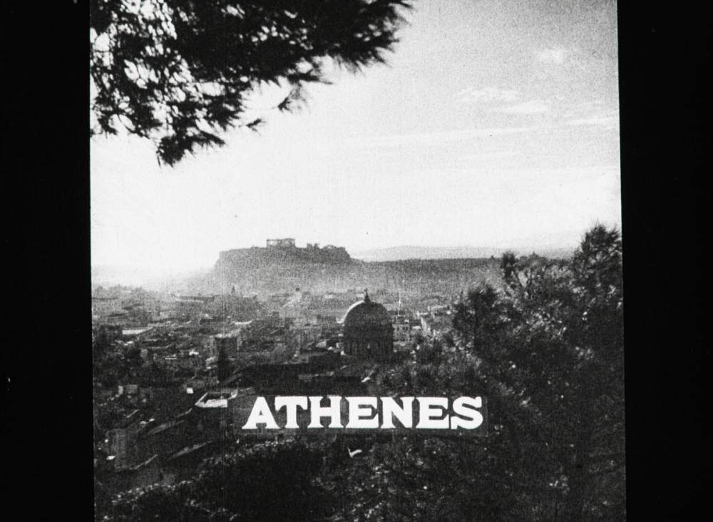 Représentations : vue d'architecture : Athènes, Le Pirée / Le film présente les principaux monuments de la ville d'Athènes : canal de Corinthe, port du Pirée, Acropole, Aéropage, les Propylées, le temple d'Athéna Niké, Erechthéion, les Caryatides, le Parthénon.