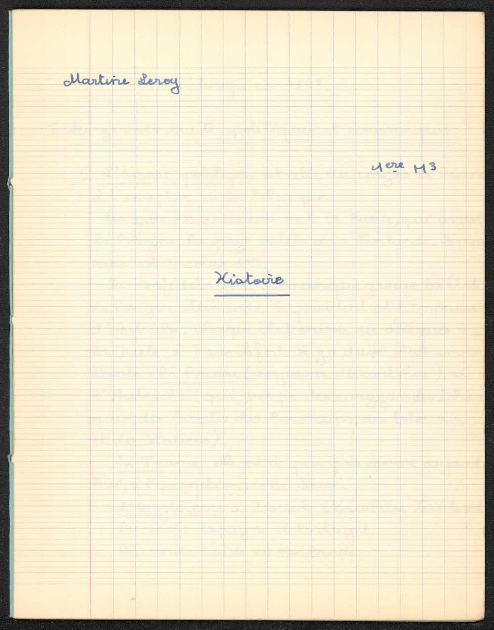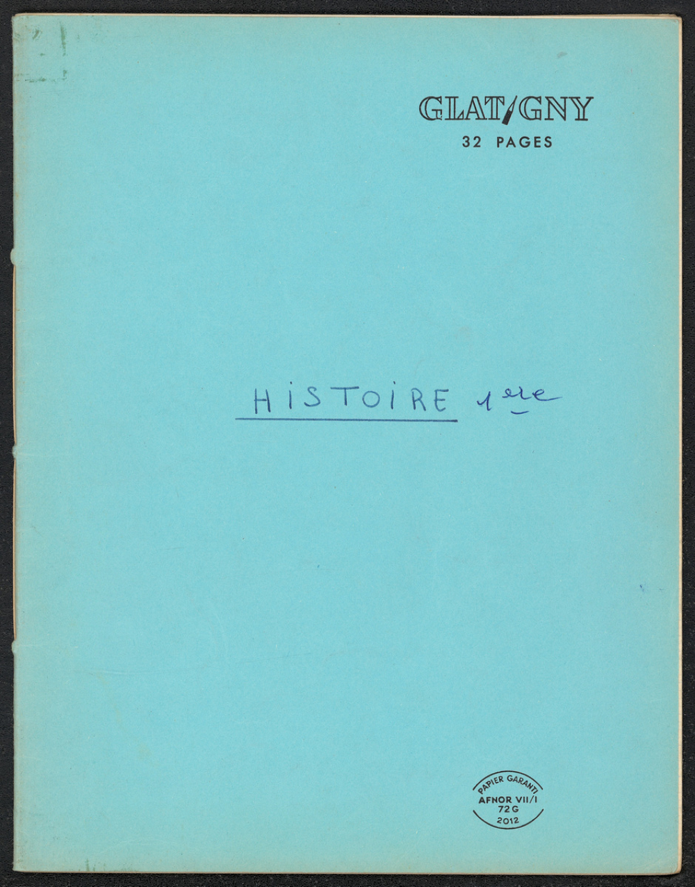 Notes : Cahier d'Histoire de Martine Leroy-Bouveyron (née Leroy) alors âgée de 17 ans, élève de 1ère M3, au Lycée Victor Duruy à Paris (VIIe arrondissement), durant l'année 1964-1965.