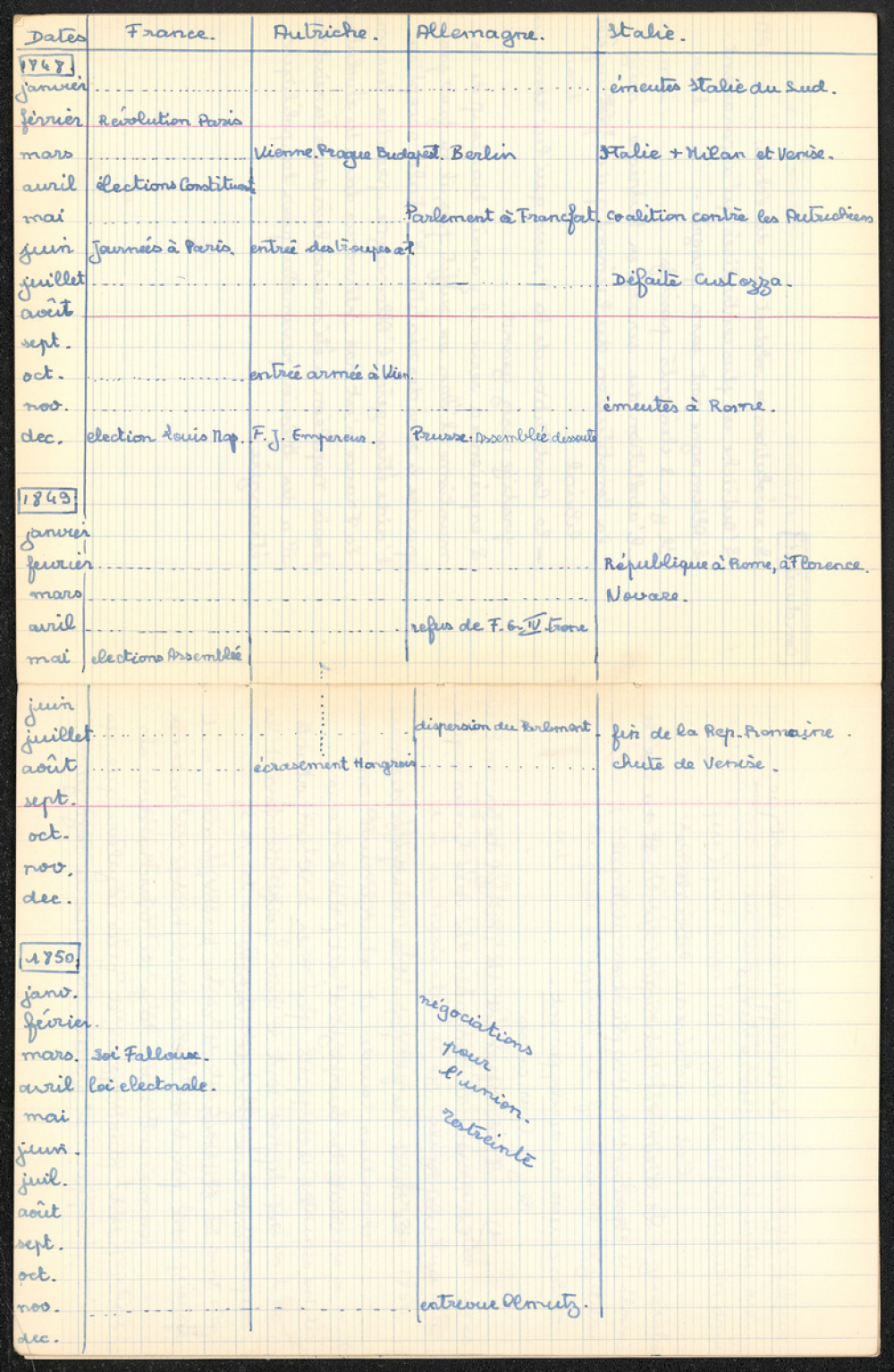 [Tableau chronologique France, Autriche, Allemagne, Italie de 1848 à 1850]