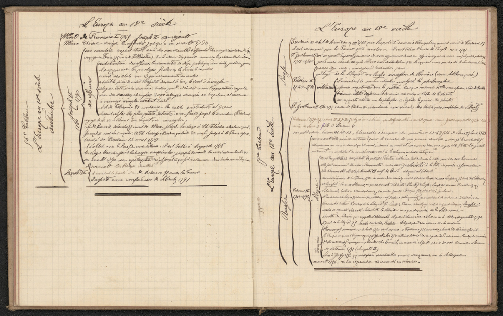 Notes : Il s'agit du cahier d'Histoire de l'élève Henry Taudière, scolarisé classe de Rhétorique au collège Saint-Joseph de Poitiers, probablement en Seconde durant l'année 1874 à 1875.