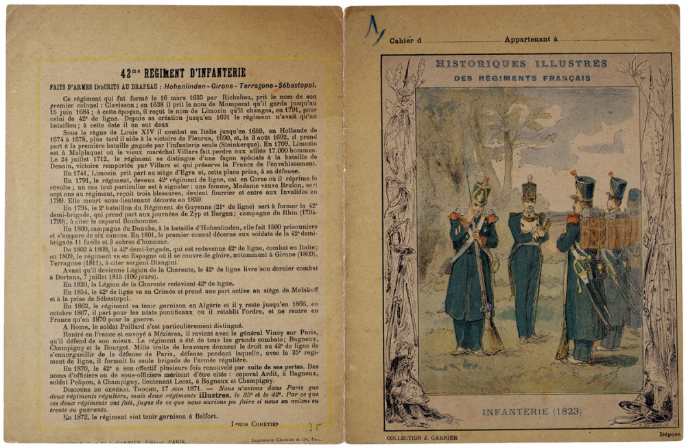 Verso: texte de Louis Chrétien "42ème régiment d'infanterie" (historique de 1635 à 1872).
