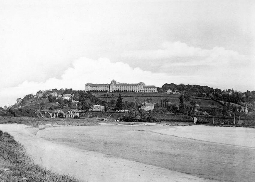 Notes : L'Institut Notre-Dame, le Jardin des Plantes et le Tramway de la Côte (Vue prise des Grèves - Ouest).