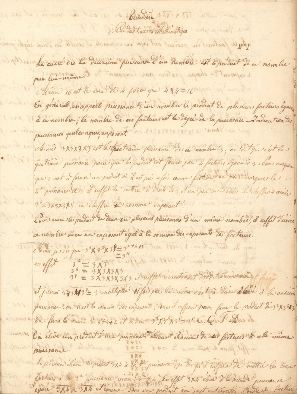 Le contenu repose sur des rédactions de Mathématiques, c'est-à-dire de l'énoncé d'un principe suivi par son raisonnement et conclu par des exemples.