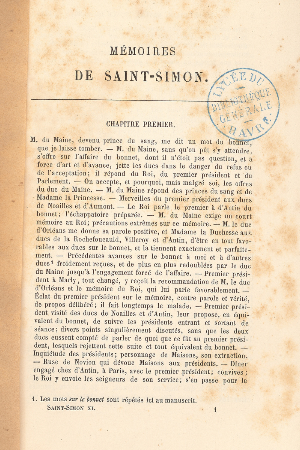 • tampon : Lycée du Havre : Bibliothèque générale : Section Série : N°2254(faux-titre)