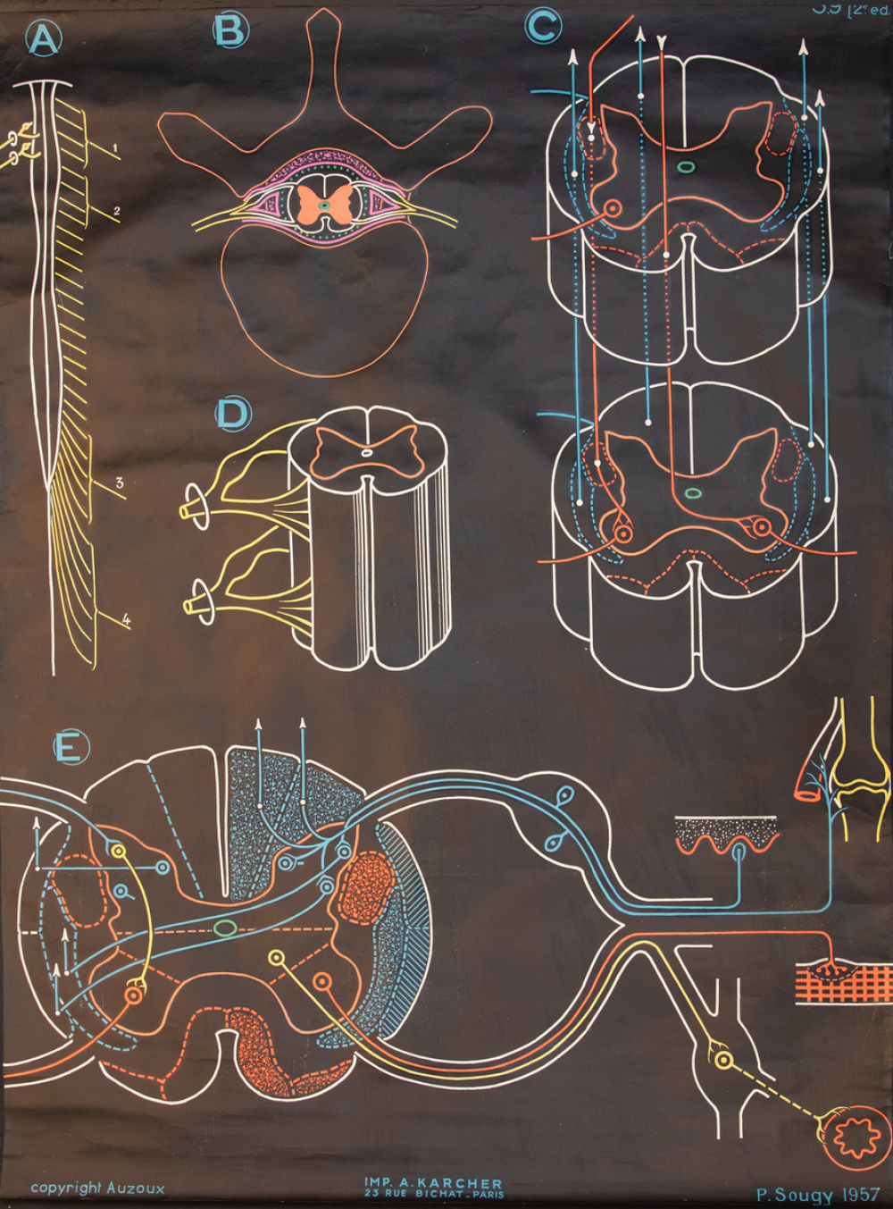 Description : Grande planche murale de sciences naturelles illustrée en couleurs sur fond noir, imprimée sur papier glacé épais avec baguettes en bois en haut et en bas de la planche munie d'un ruban de suspension et entoilée au dos.