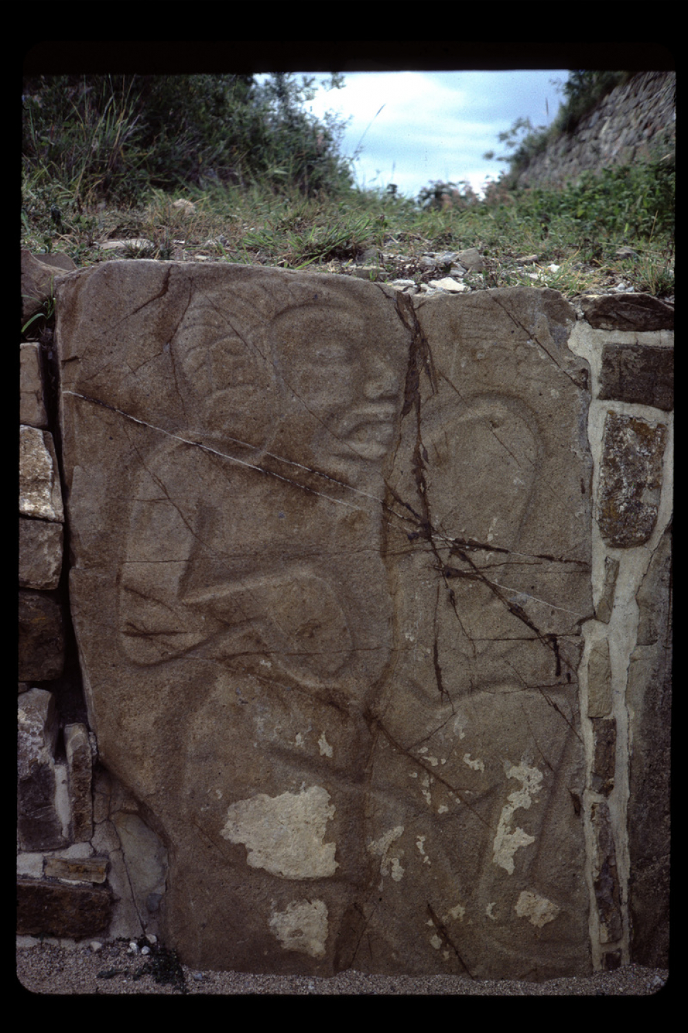 Monte Albán : danzantes avec le l'herbe au dessus