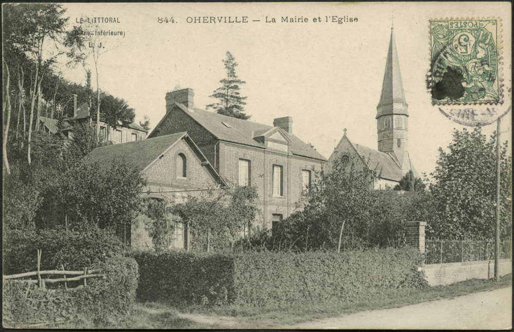 Notes : Photographie représentant la mairie et l'église d'Oherville.
