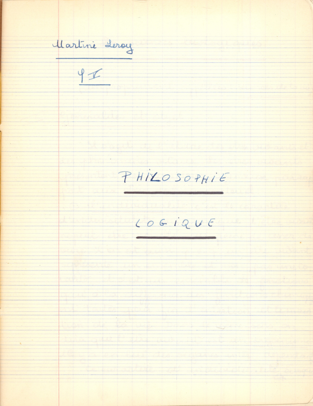 Notes : Cahier de Philosophie logique de Martine Leroy-Bouveyron (née Leroy) alors âgée de 18 ans, élève de terminale bac Philo 5, au Lycée Victor Duruy à Paris (VIIe arrondissement), durant l'année 1965-1966.