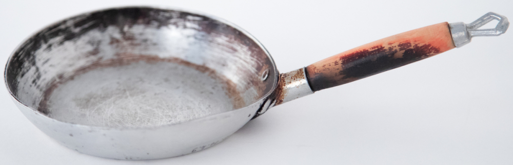 Description : Poêle en aluminium teinté noir. Poignée en bois teinté noir et aluminium.