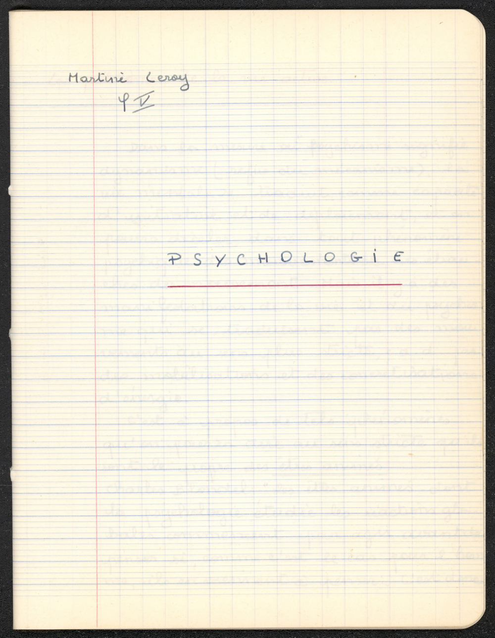 Notes : Cahier de Psychologie de Martine Leroy-Bouveyron (née Leroy) alors âgée de 19-20 ans, élève de classe préparatoire Fontenay, au lycée Claude Monet à Paris (XIIIe arrondissement), durant les années 1966 à 1968.