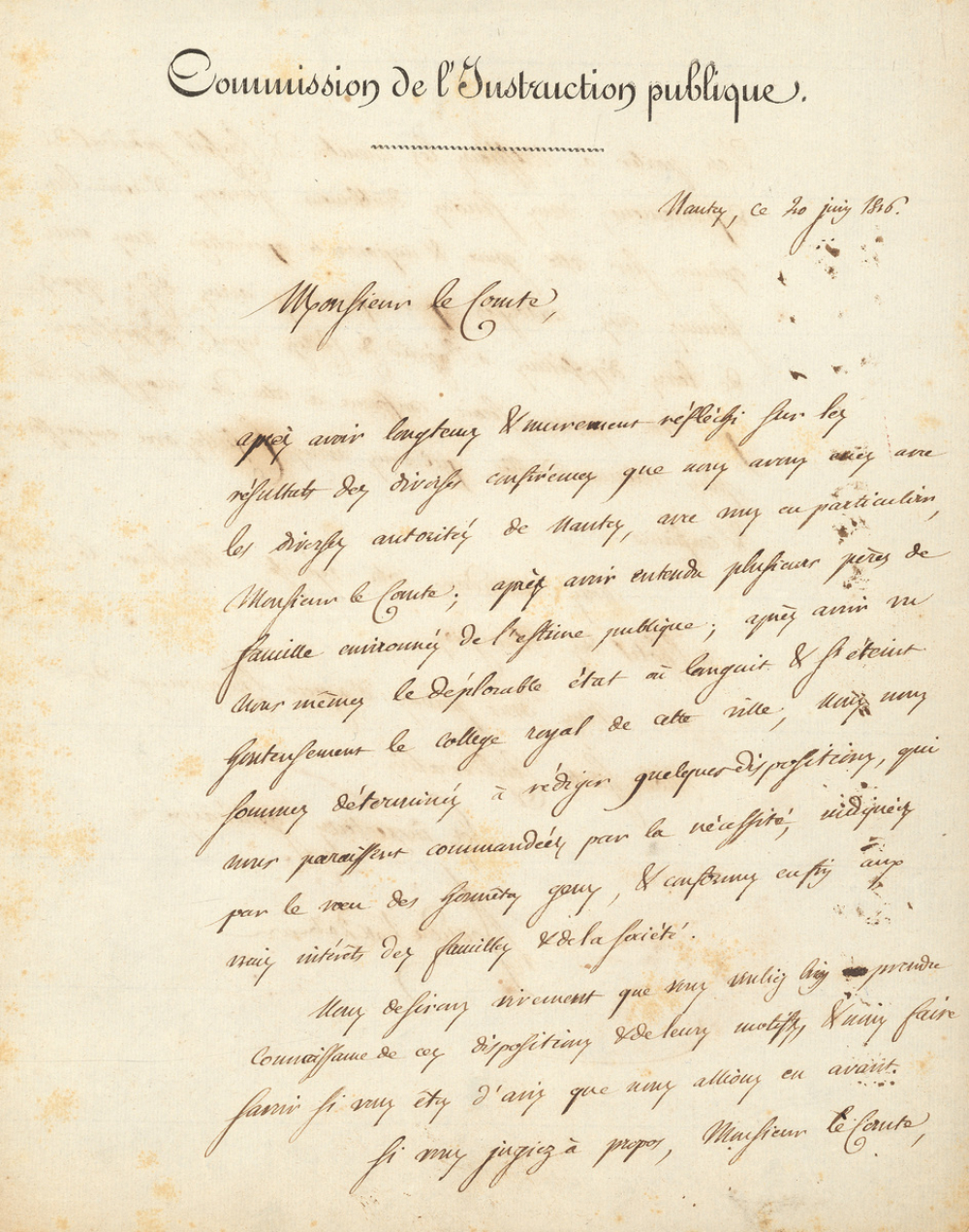Description : Feuille à l'en-tête de la Commission de l'Instruction publique.