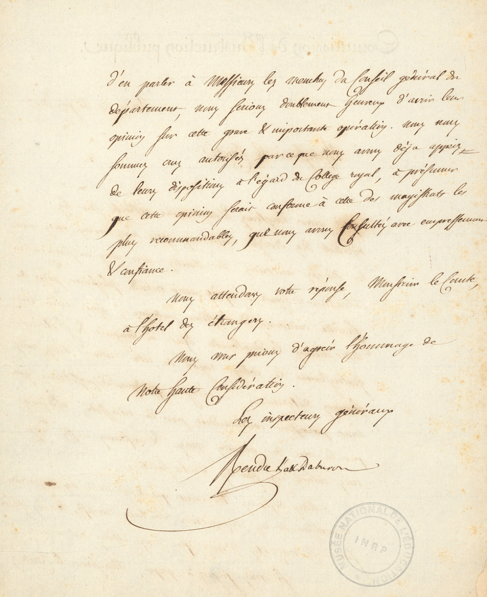 Notes : Ambroise Rendu est Inspecteur Général de l'Université à partir de 1808. De 1817 à 1830, il est substitut du procureur général près la cour royale de Paris. En 1841, il reconstitue la faculté de théologie et fonde le "cercle catholique".