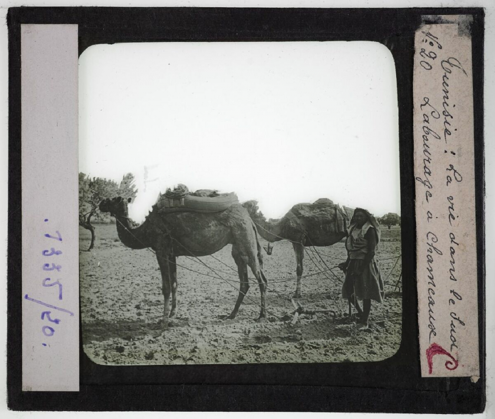 Tunisie (La vie dans le Sud). Labourage à chameaux.