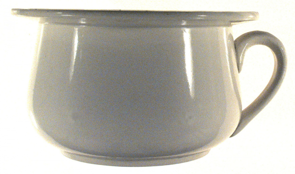 Description : Vase de nuit avec bord plat et anse, logo en dessous du vase
