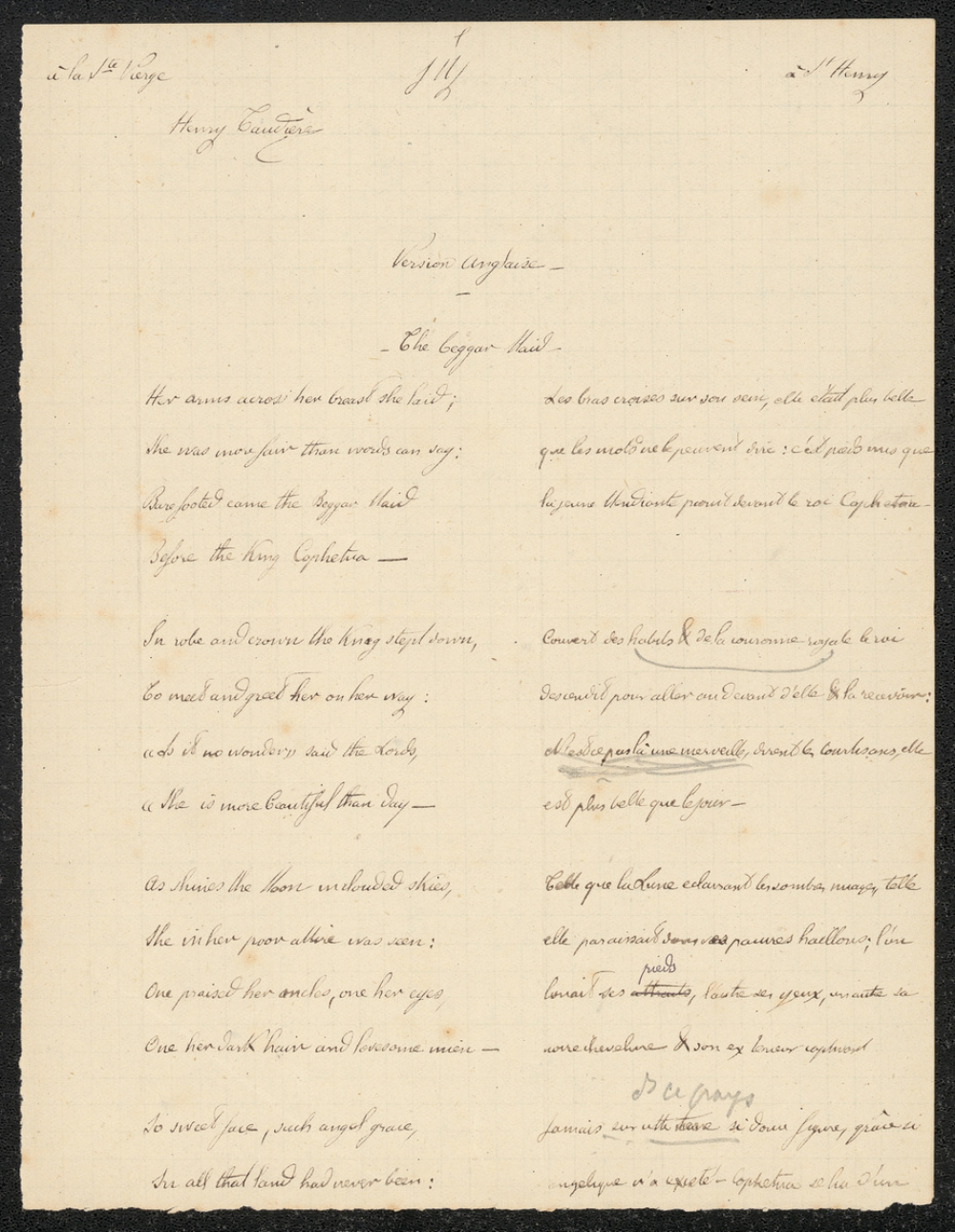 Notes : Il s'agit d'une copie de version anglaise de l'élève Henri Taudière, scolarisé au collège Saint-Joseph de Poitiers, probablement en Seconde durant l'année 1874 à 1875.