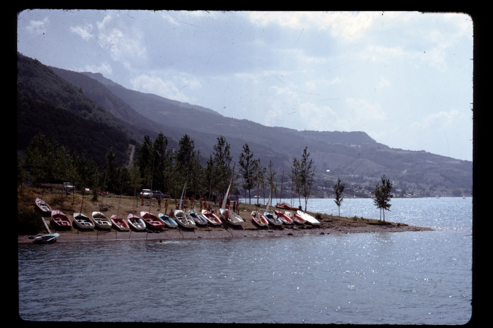 Représentations : paysage : lac / Le visuel montre le lac, avec des bateaux amarrés sur la rive.