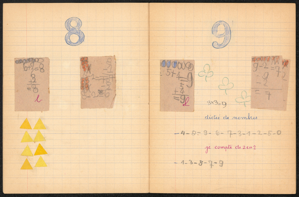 Le contenu repose sur des collages de billets d'additions, de soustractions et de multiplications ; des dictées de nombres et des écritures de nombres.