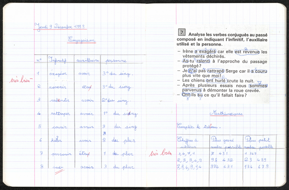 - exercices de grammaire et d'orthographe (dictées, conjugaisons, vocabulaire).