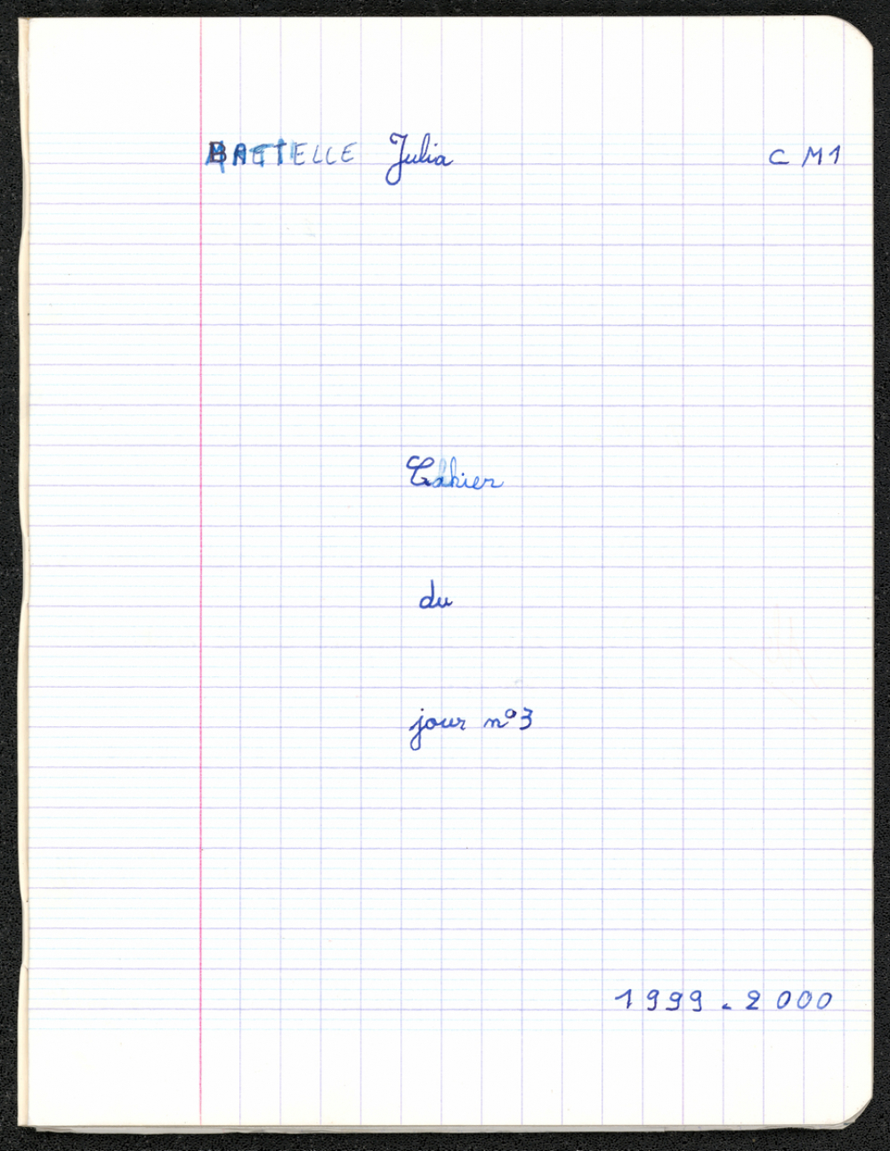 Notes : Cahier du jour n°3 appartenant à Julia Bretelle, scolarisée en classe de CM1 à l'école de Reillanne (04) pour l'année scolaire 1999-2000.