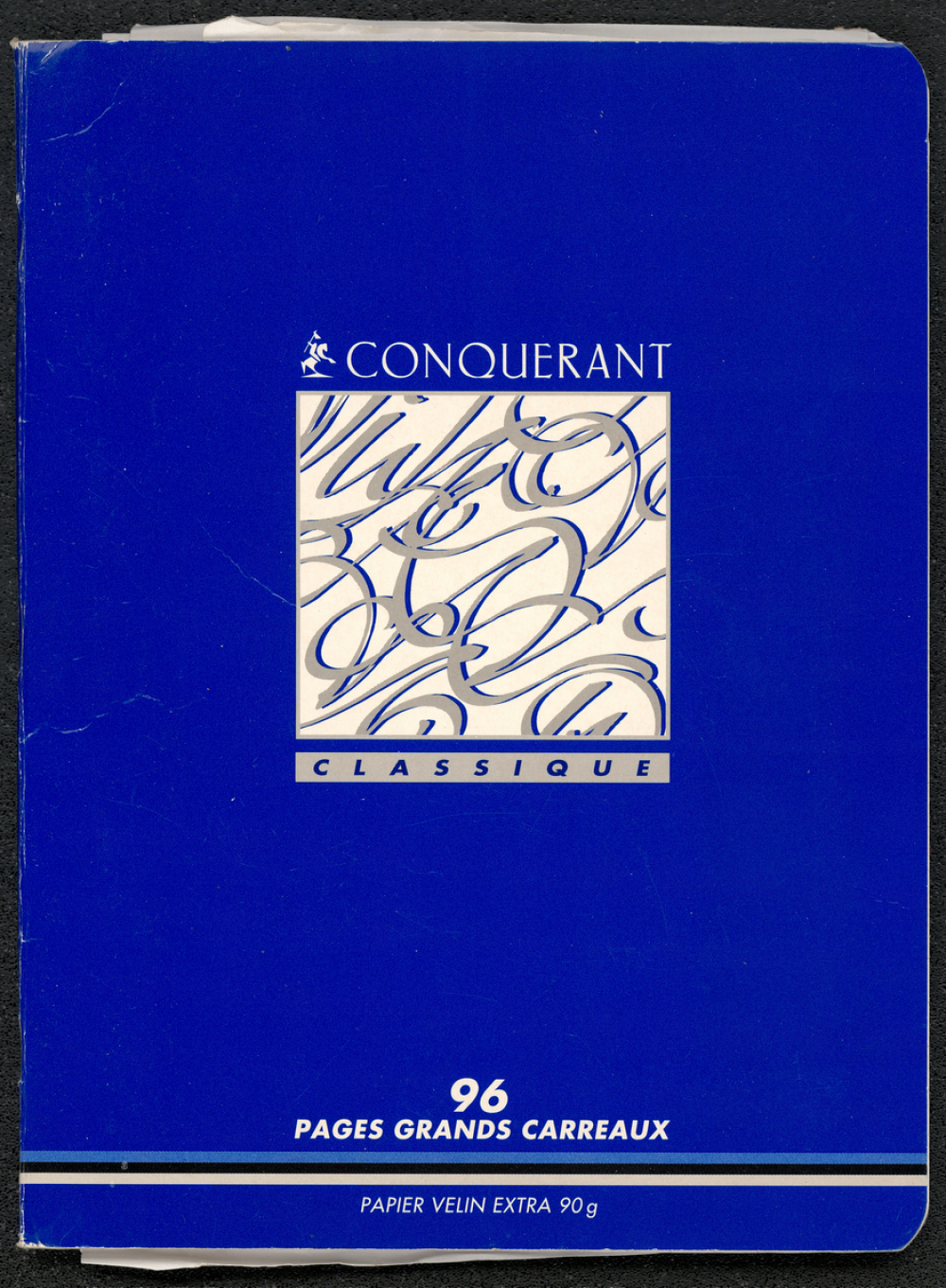 Description : Cahier en papier vélin, à la couverture en papier cartonné et plastifiée et à la reliure piquée agrafée. Réglure Séyès.