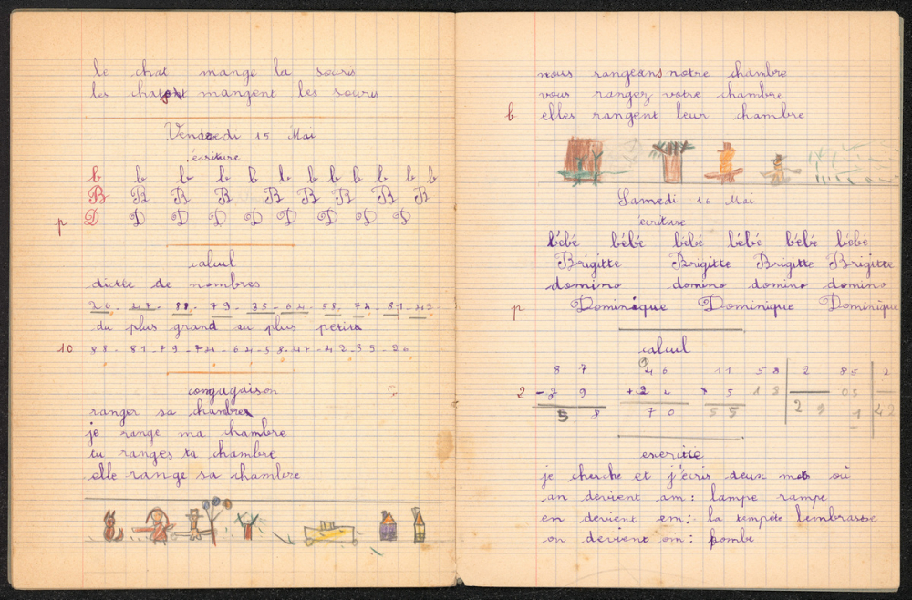 Certains exercices de français sont illustrés par des dessins de petites tailles réalisés par l'auteur.