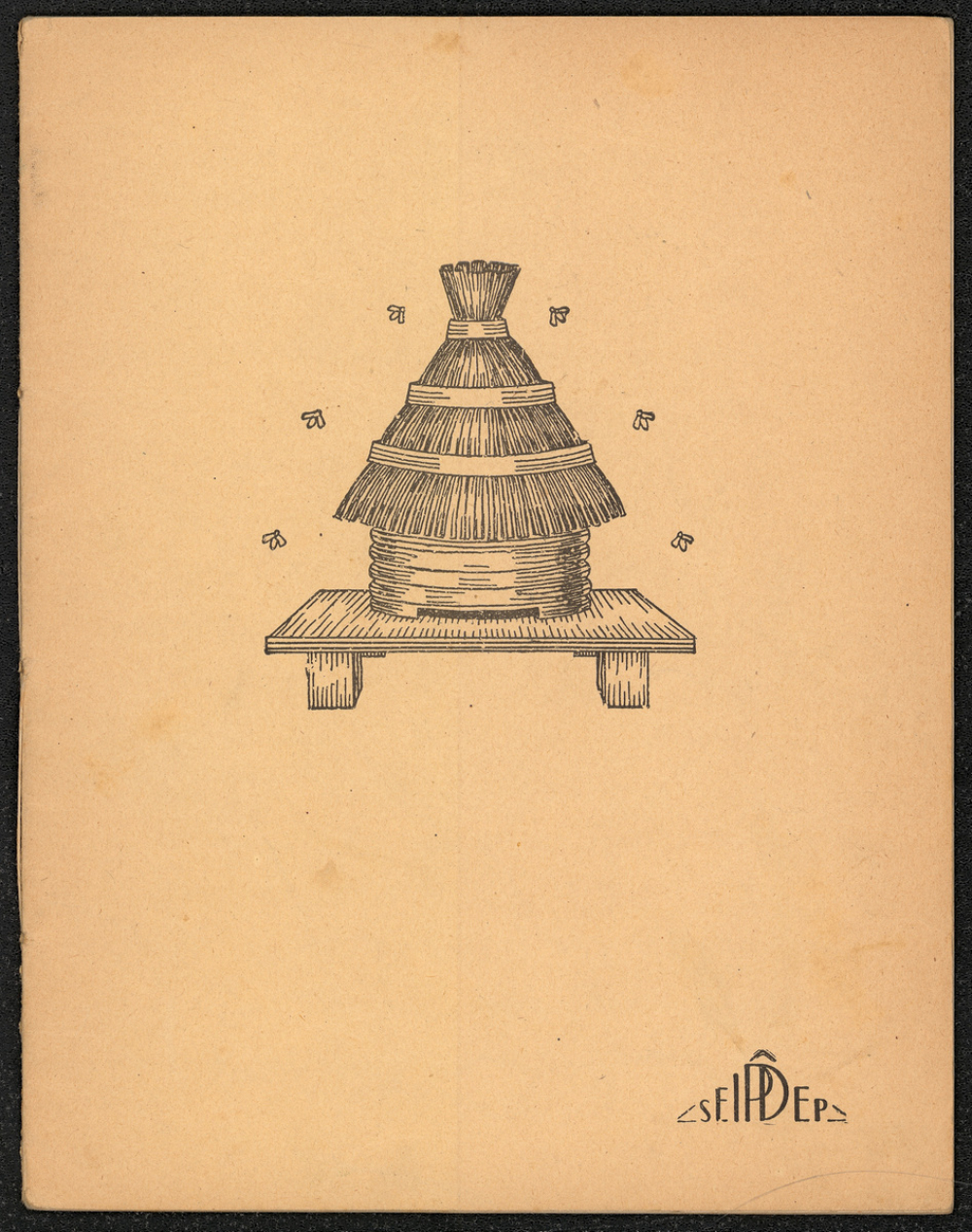 Couverture illustrée d'une ruche sur une tablette environnées d'abeilles en vol (symbole de la ville d'Elbeuf)