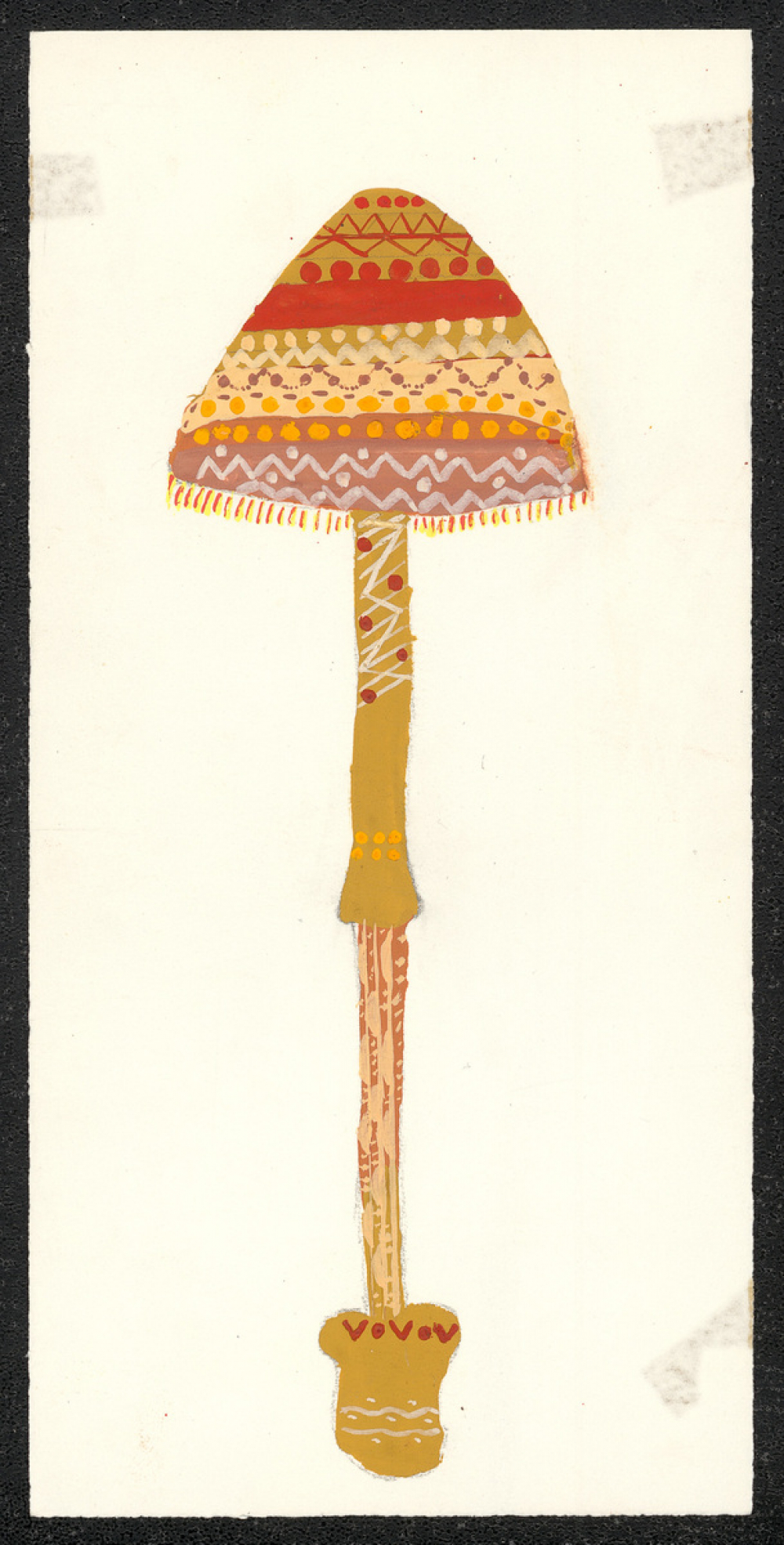 Description : Champignon droit peint de multiples couleurs.