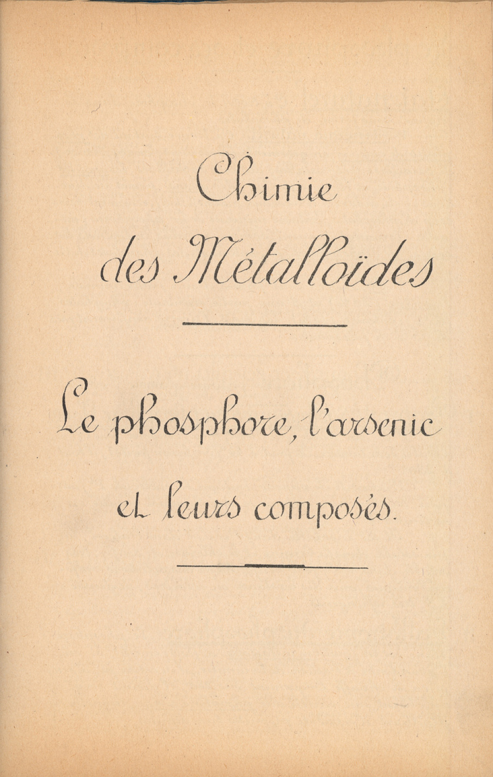 Phosphore : Propriétés physiques du phosphore blanc ; L'allotropie du phosphore ; Propriétés du phosphore rouge ; Quelques transformations ; Généralités sur les propriétés chimiques ; L'action de l'oxygène ; Rôle réducteur du phosphore ; Action de l'hydrogène - les phosphores d'hydrogène ; Action des halogènes ; Action du soufre ; Action des métaux ; Action physiologique et caractères analytiques ; Préparation du phosphore blanc ; Préparation du phosphore rouge
