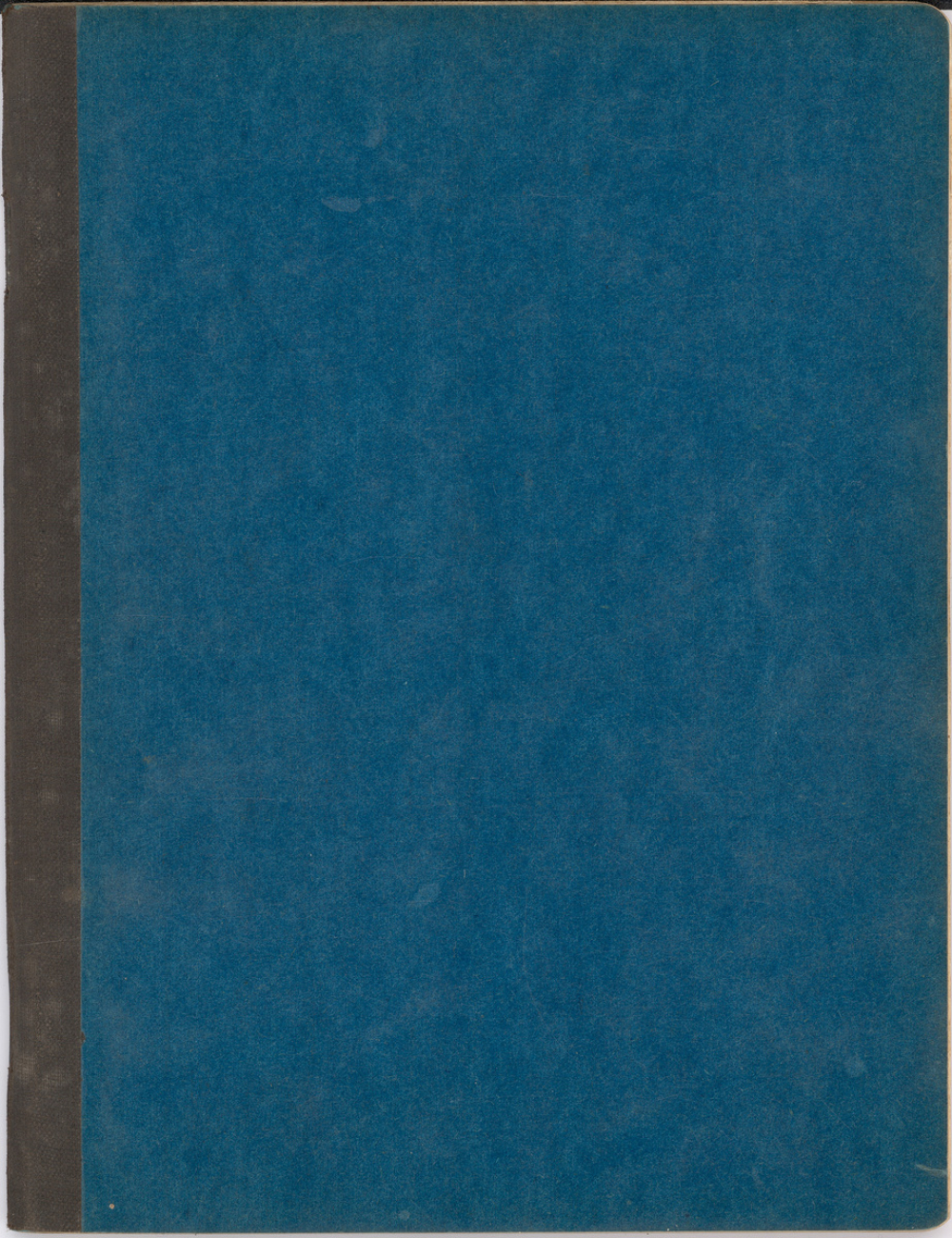 Description : Couverture cartonnée bleue. Dos toilé de couleur bleue. Reliure métallique agrafée. Réglure carreaux 8 x 8 mm sans interlignes avec marge rose. Pontuseaux verticaux et vergeures horizontales. Filigrane "Armorique N" avec représentation d'un écu ancien de parti au premier fleurs de lys et au deuxième de mouchetures d’hermine le tout sommé d'une couronne. Gardes blanches, avant cadre à motifs abstraits et arrière carte de la France et de ses chemins de fer.