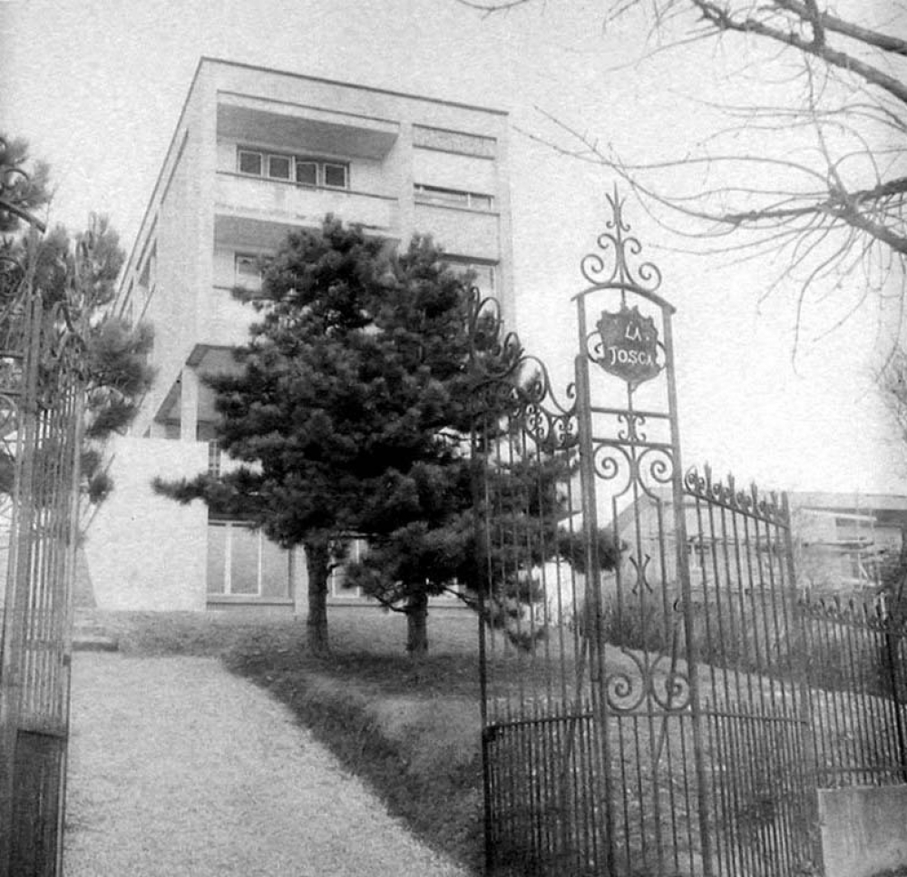Représentations : vue d'architecture : bâtiment / Le visuel représente un portail ouvert donnant sur l'entrée du bâtiment scolaire.