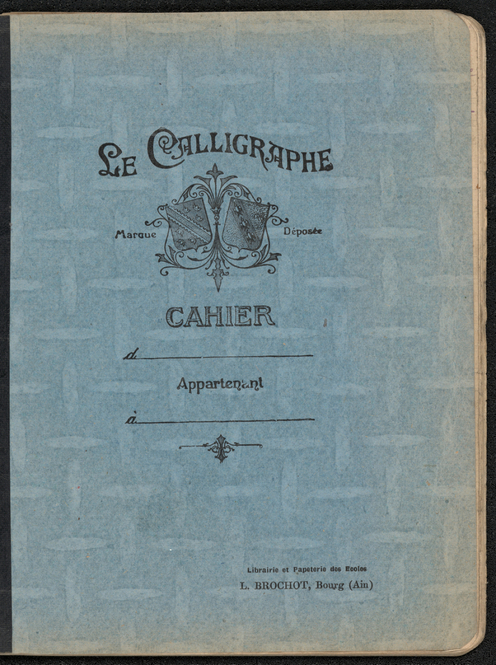 Description : Cahier en papier vergé de marque "Le Calligraphe", à la couverture en papier fort bleu et à la reliure brochée au fil renforcée par un dos carré-collé noir. Réglure Séyès.