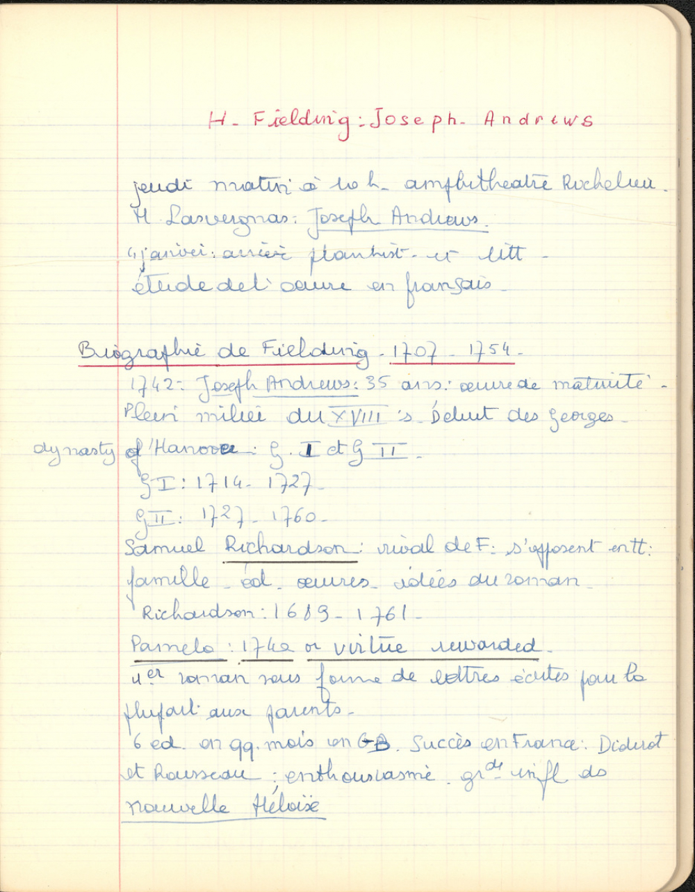 Notes : Il s'agit du cahier d'Anglais de Martine Leroy-Bouveyron (née Leroy) alors âgée de 20 ans, étudiante en Licence Lettres Modernes à La Sorbonne, Paris Ve arrondissement, durant l'année 1967-1968.